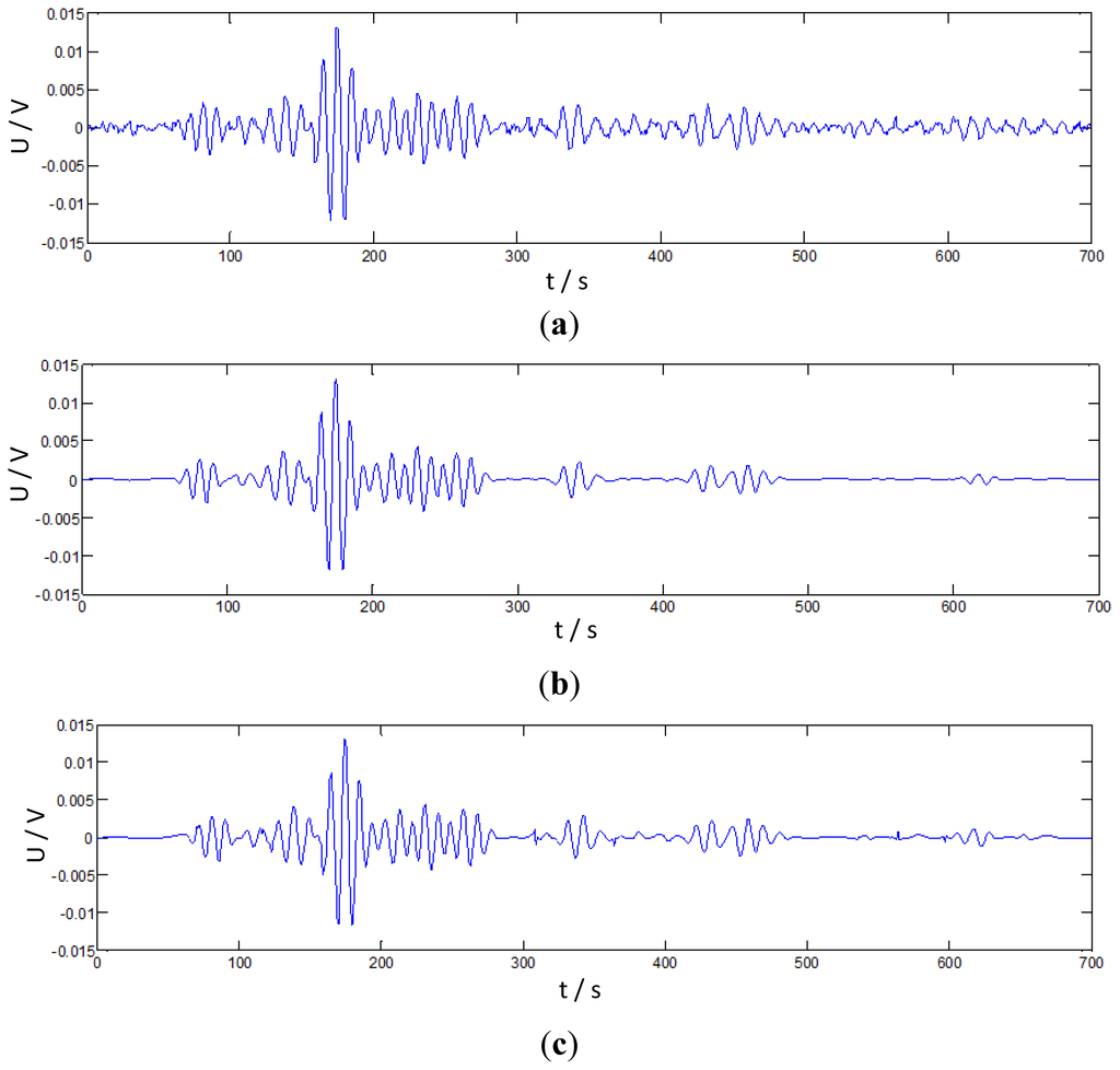 To evaluate denoising result effects, three experienced indicators are introduced: Signal-to-Noise Ratio (SNR), Mean Square Error (MSE) and Correlation Coefficient (CC) [55,56]. The computed denoising indexes of the experimental signals also indicate the denoising algorithm of IRSGWT based on neighboring coefficients has more remarkable performance, as shown in Table 1.