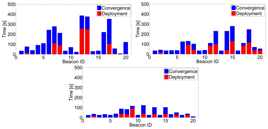 Therefore, when a beacon is initialized, low-variance inter-beacon measurements are integrated in the remaining beacon initialization tools, helping their convergence and originating a beacon initialization chain-reaction effect. As a result, using inter-beacon measurements drastically reduces the beacon initialization times, as will be shown in Section 6. The effect is more evident with higher values of IDL, since they originate a larger number of inter-beacon relations.