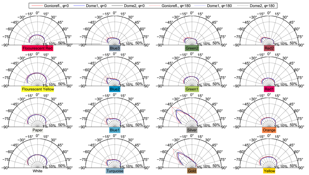 - Leloup, F.B.; Forment, S.; Dutré, P.; Pointer, M.R.; Hanselaer, P. Design of an instrument for measuring the spectral bidirectional scatter distribution function. Appl. Opt. 2008, 47, 5454–5467. [Google Scholar]