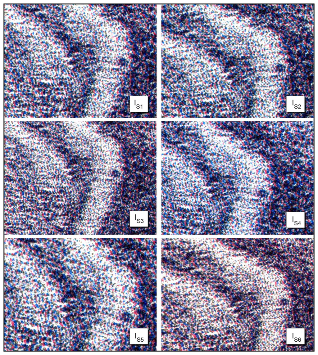 In Equation (1) F and F−1 are forward and backward Fourier transform operators, respectively, and * represents the complex conjugate. Equation (1) is efficiently calculated using a Fast Fourier Algorithm. The coefficient α controls the correlation peak width. Optimum values range from α = 0 for image characterized by high spatial frequency content and high noise level, to α = 0 for low noise image with less fine structure. As proposed in literature [31,32], we have always used α = 0.5 values.