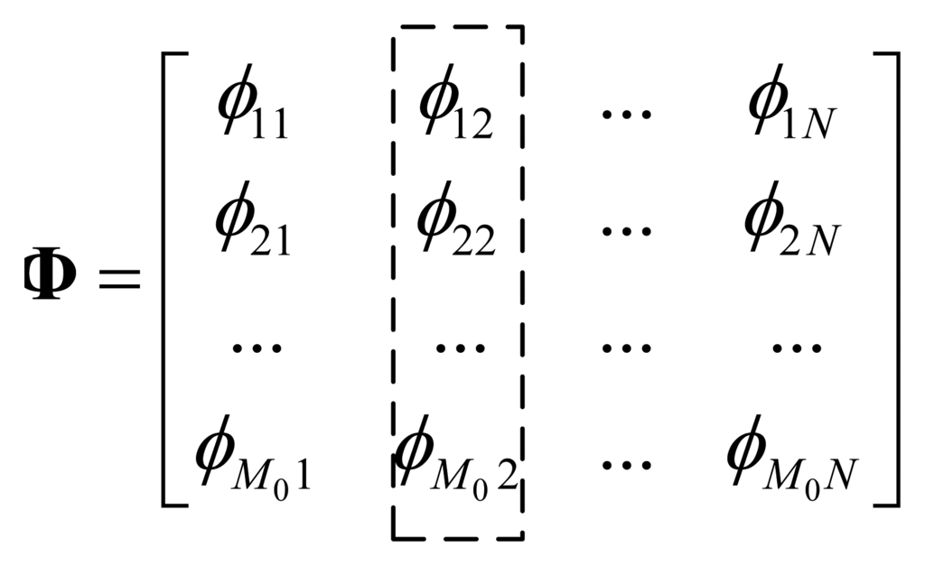 Here αi, (i = 1,… N) is independent and identically distributed hyper-parameter. σ2 is the noise power. Assuming there are M0 initial observed samples, to obtain the (M0 + 1)-th sample, a new projection vector rM0 + 1 must be constructed, and the new projection matrix becomes: