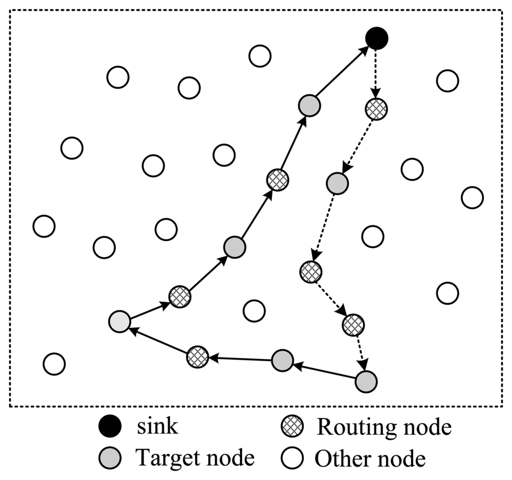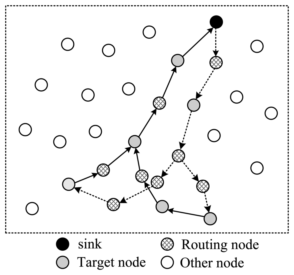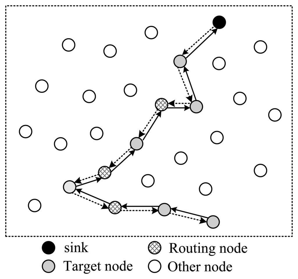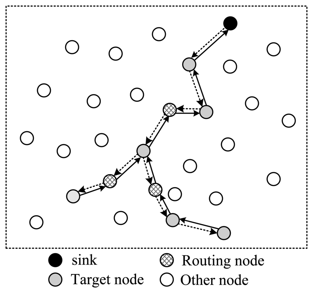 As stated in the previous subsection, the target nodes selected can't guarantee formulation of a complete routing structure, therefore, some supplementary nodes are needed. These nodes can be used in two styles. One is to use them as routing nodes, and no data is collected from them. The other is to use them both as routing nodes and data collection nodes.