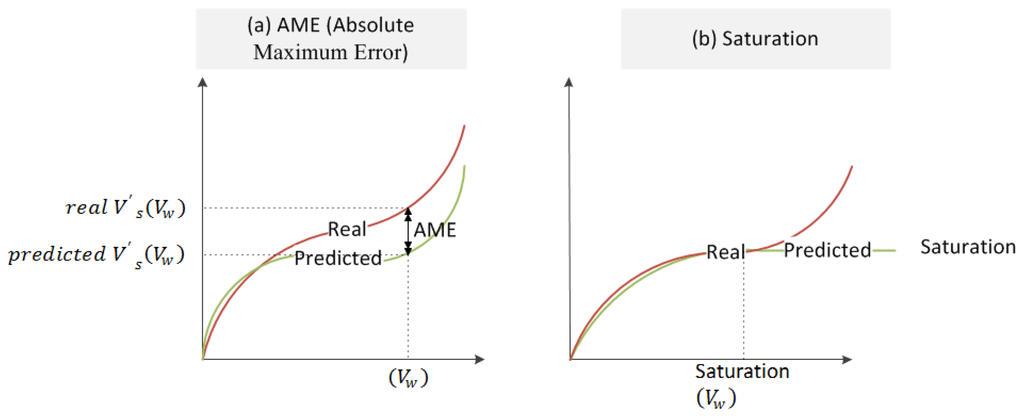 Saturation S: the saturation is the phenomenon in which the output stops tracking the target so as the target remains increasing, while the output converges to a mean value. As a consequence, AME tends to infinite.