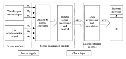 The equipment used for measuring the attitude of a directional well logging tool is usually called a well logging inclinometer. Acquiring the posture and orientation uses the gravity field and magnetic field which have relative stability characteristics. Under different orientations, the fluxgate sensor and acceleration sensor data output will have different values. By 3D coordinate rotation and transformation, the current attitude angle and azimuth angle of the equipment can be uniquely determined.