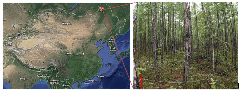 This work was supported in part by the National Basic Research Program of China (2013CB733403), the National Natural Science Foundation of China (41271348) and in part by the National High Technology Research and Development Program (2012AA12A303). We also thank the field experiment collaborators who are Jinling Song and Congrong Li from Beijing Normal University, as well as Yongliang Zhang from Forestry Bureau of Genhe, Inner Mongolia, China.