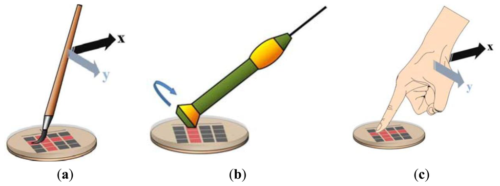 - Jamali, N.; Sammut, C. Material classification by tactile sensing using surface textures. Proceedings of the IEEE International Conference on Robotics and Automation, Anchorage, AK, USA, 3–8 May 2010; pp. 2336–2341.