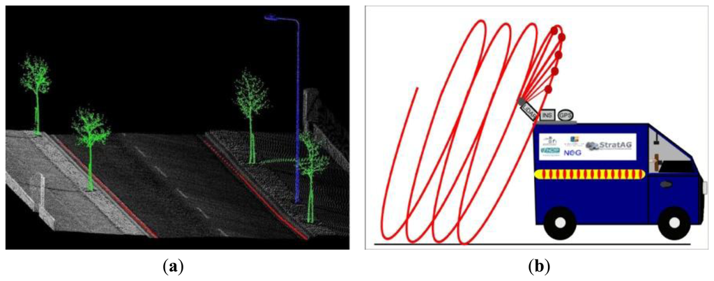 - Kukko, A.; Jaakola, A.; Lehtomäki, M.; Kaartinen, H.; Chen, Y. Mobile mapping system and computing methods for modelling of road environment. Proceedings of the IEEE Joint Urban Remote Sensing Event, Shanghai, China, 20–22 May 2009.