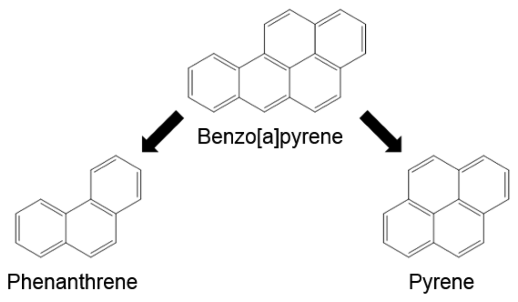 Polycyclic aromatic hydrocarbons (PAHs) are a large group of substances consisting of molecules with fused aromatic ring systems. With incomplete combustion of organic compounds as their major source of formation, they are to be found ubiquitously in environmental samples of different kinds like soils and waters [1]. They have attracted considerable attention during the last decades because several PAHs have a high carcinogenic and mutagenic potential, e.g., causing cancer in lungs, skin and prostate [2,3] and are also considered endocrine disrupting compounds (EDC) [4]. The US Environmental Protection Agency (EPA) have identified 16 molecules with a wider range in molecular size as well as chemical and physiological properties, whereas in the EU the priority pollutants list contains the 15(+1) PAHs considered most harmful to human health [5,6]. Nevertheless, benzo[a]pyrene (B[a]P) is usually taken as marker substance for PAH exposure in general because of its extremely high carcinogenic potential [7]. Therefore, different limit values have been established for B[a]P in the EU in different matrices, e.g., air (2004/107/EC), drinking water (98/83/EC) and foodstuffs (835/2011).