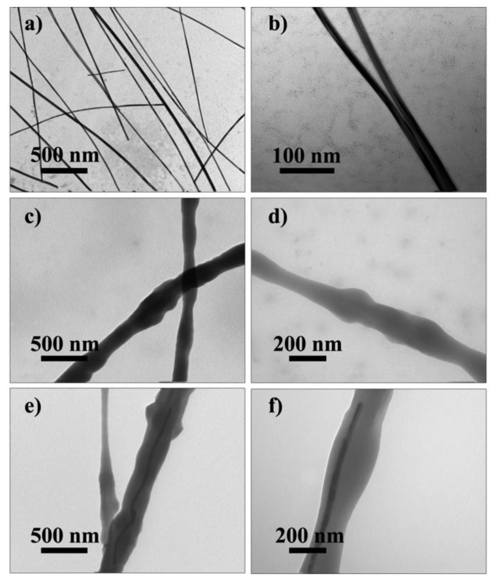 3.4. TEM Images of the Nanofiber Webs