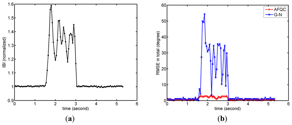 The complete experiment consisted of four parts. In the first experiment, we recorded root-mean-square error (RMSE) of AFQC with Euler angle in static and dynamic states, where a classical G-N method was added as a comparison group [25].