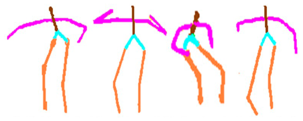 From a sequence of depth silhouettes, the corresponding skeleton body models are produced. Each skeleton model is quite flexible along with any body movement activity [34,35]. Figure 3 illustrates some skeleton models of different activities in indoor environments.