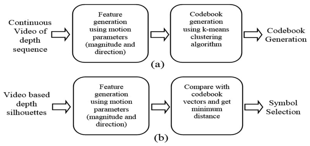 Figure 7. Basic steps of (a) codebook generation and (b) code selection for HMM.