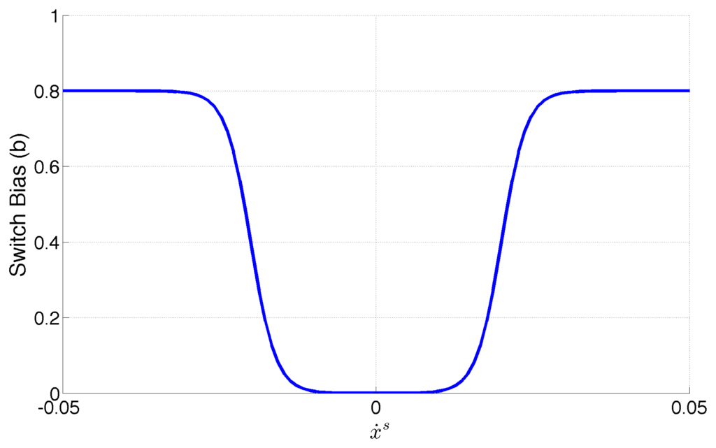 The bias term b is introduced to favor a phase switch depending on the previous state and the estimated trend. Rather than looking only at the sign of ẋs, the value of b is made dependent on its absolute value.