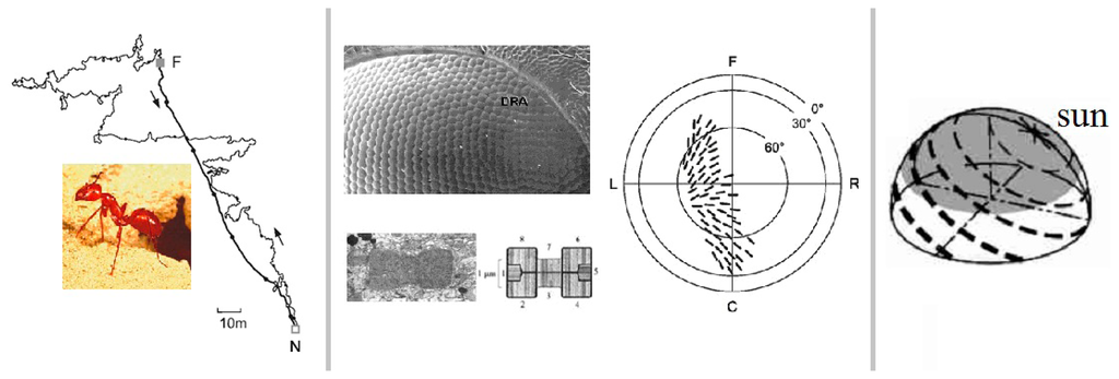- Collett, M.; Collett, T.S; Bisch, S.; Wehner, R. Local and global vectors in desert ant navigation. Nature 1998, 394, 269–272. [Google Scholar]