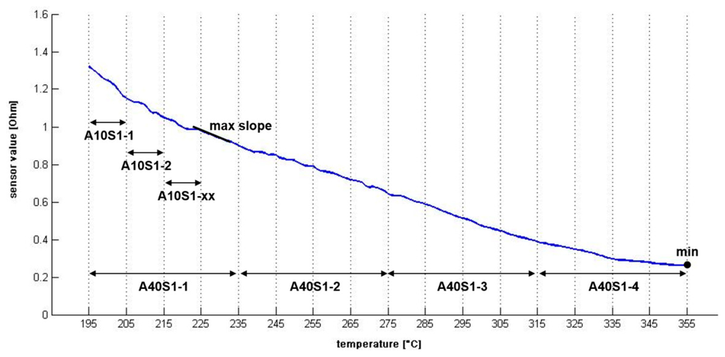 Several indices (features) from the preprocessed sensor curves were calculated (see Table 1). Such indices from the time domain are total areas and subareas (to view examples, see Figure 3). Further on, the steepest slope and the corresponding temperature within the curve were calculated, respectively.