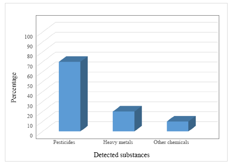A very large number of enzyme biosensors is studied for the detection of pesticides. In particular, as it is shown in Figure 4, about 70% of these devices is employed for the determination of pesticides, the 20% is applied in the determination of heavy metals and the rest (10%) for other chemicals (benzoic acid, nitric oxide, cyanide and so on) [].