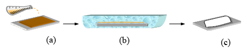 The alternative molecular imprinting is an expansion of a bio-imprinting in which existing recognition sites in an enzyme may be modified through the presence of a target molecule. According to this approach, candidate materials not having molecular recognition sites are transformed in molecular recognition membranes. The molecular memory of the template is induced in the membrane at the same time as the membrane is forming from its polymer solution. The process is mostly used for the preparation of membranes having flat-sheet configuration. The membrane is prepared in the presence of target molecules via the phase inversion technique. Briefly, a specific synthesized polymer (without cross-linker), which contains functional groups complementary to the template is used as membrane forming material. The process consists in the transformation of the polymer from the liquid state to a solid phase either by the “dry” or by the “wet” method. In the first method, the polymer solution is cast on a glass or Teflon plate and the polymer solidification is accomplished by the simple evaporation of the solvent. In the “wet” method, the film cast solution is immersed in a non-solvent and polymer solidification is attained by a precipitation induced through contact with the non-solvent [,]. Sometimes, a combination of the two methods is also carried out. Scheme 2 shows the preparation of a flat-sheet membrane via the “wet” phase inversion.