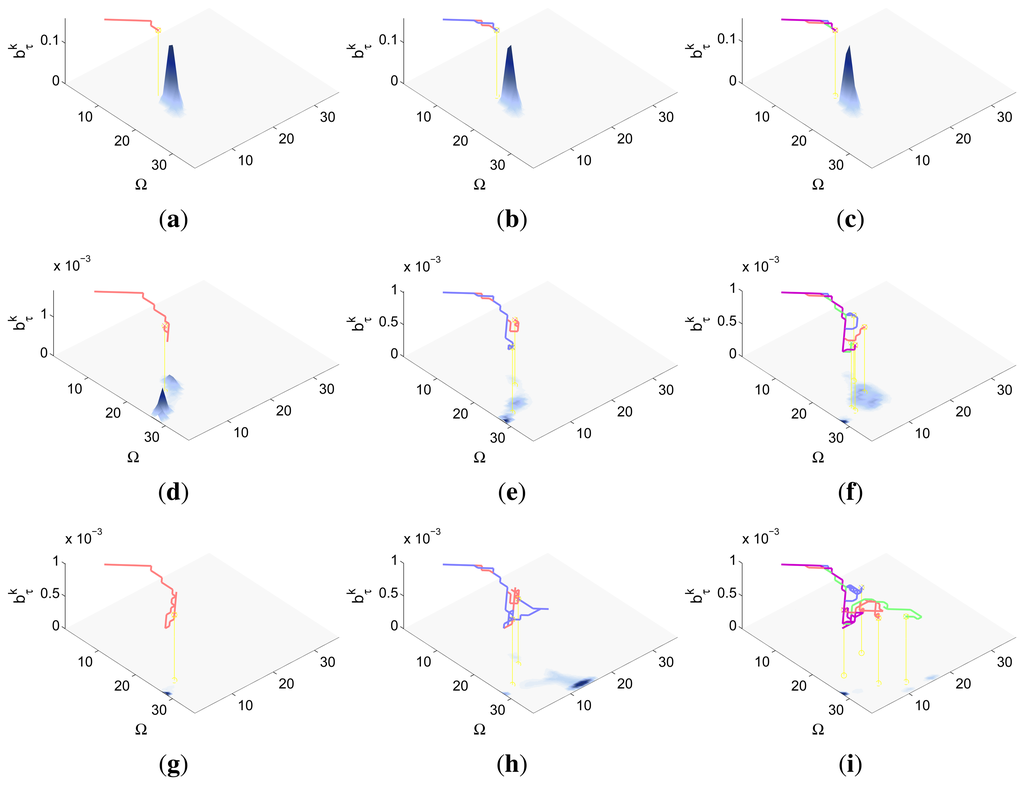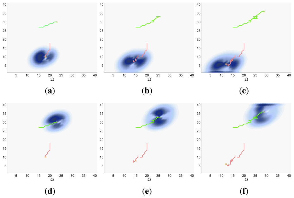 There are several reasons to select this utility function and optimization algorithm. On one hand, in critical time searching tasks, the sooner the target is detected, the higher the chances to find it sooner. Therefore, in these types of tasks it is beneficial to optimize a utility function directly related with the detection time, such as it is expected value (i.e., ET). On the other hand, the inherent complexity of the searching task, at least NP-hard [33], should be tackled with a computational efficient optimization method that is able to deal with the multiple local minima that can appear in the landscape of the ET utility function due to the target belief b(τk), target transition P(τk|τk−1, ϵ) and no detection likelihood . CEO is a good choice in this respect, as its probabilistic nature and global searching capabilities allow it to navigate through complex non-linear/non-differential utility function landscapes, and its computation cost can be controlled by fixing the maximum iterations and number of samples. Other possible choices of utility function and heuristic for the controller layer are discussed in Section 3.
