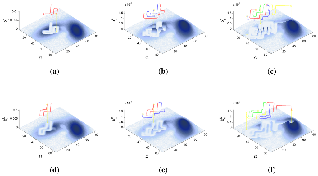 - Hoffmann, G.; Tomlin, C. Mobile Sensor Networks Control Using Mutual Information Methods and Particle Filters. IEEE Trans. Autom. Control 2012, 55, 32–47. [Google Scholar]