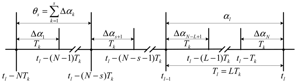 In recent decades, strapdown attitude algorithm design activity has centered on developing routines for computing the coning correction using various approximations to the updating rotation vector ϕl in Equation (2). The traditional numerical computation algorithm formula for updating rotation vector ϕl has the form of the integrated angular rate αl and the coning correction [4,6,8,9]: