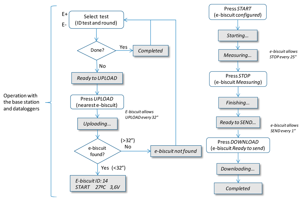 Then every “eBiscuit” datalogger involved in a given test needs to be configured in order to carry out the test. Figure 16 shows the sequence of the communication between the base station and an “eBiscuit” datalogger.