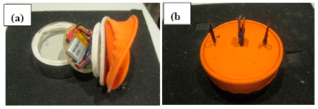 The “eBiscuit” is powered by a 3 V lithium button cell battery. However, in the future, other emerging power sources such as the “Harvest Energy” energy generation based on the Peltier effect are expected to be used [21]. This power source may constitute an alternative to conventional batteries.