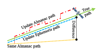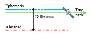Satellite position difference between almanac and ephemeris