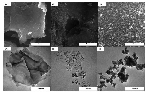 The G1 depicts a smooth surface with a wrinkled paper-like appearance (Figure 1a,d). Dispersion of Fe3O4 nanoparticles on the surface of rGO sheets has indicated a strong interaction obtained between rGO sheets and nanoparticles (Figure 1b,e). Whereas, the F20 are agglomerated that leads to larger size particles (Figure 1c,f) [21].