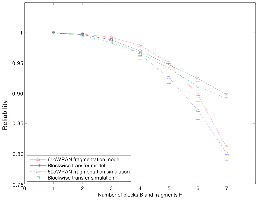 In the previous section we derived the probability that the transmission of an update fails. Next we derive the expression of the end-to-end reliability for the CoAP blockwise transfer Rblock,l and the 6LoWPAN fragmentation Rfrag,l.