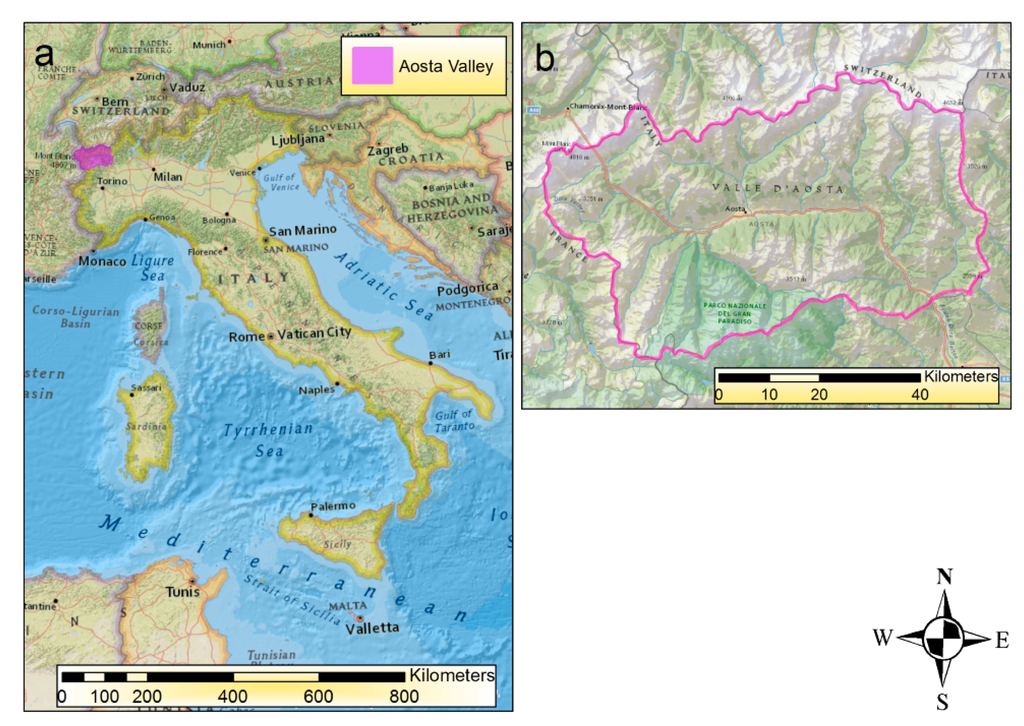 Our study area was the Valle d'Aosta Autonomous Region (RAVA, Figure 1), the smallest Italian Region (3263 km2) located in the North-West of Italy, next to the border with France and Switzerland.