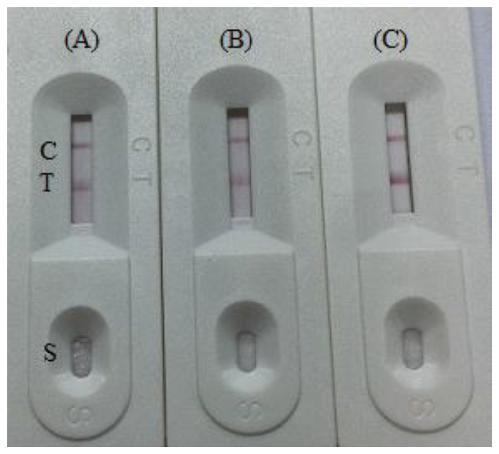 - Paek, S.-H.; Lee, S.-H.; Cho, J.-H.; Kim, Y.-S. Development of rapid one-step immunochromatographic assay. Methods 2000, 22, 53–60. [Google Scholar]