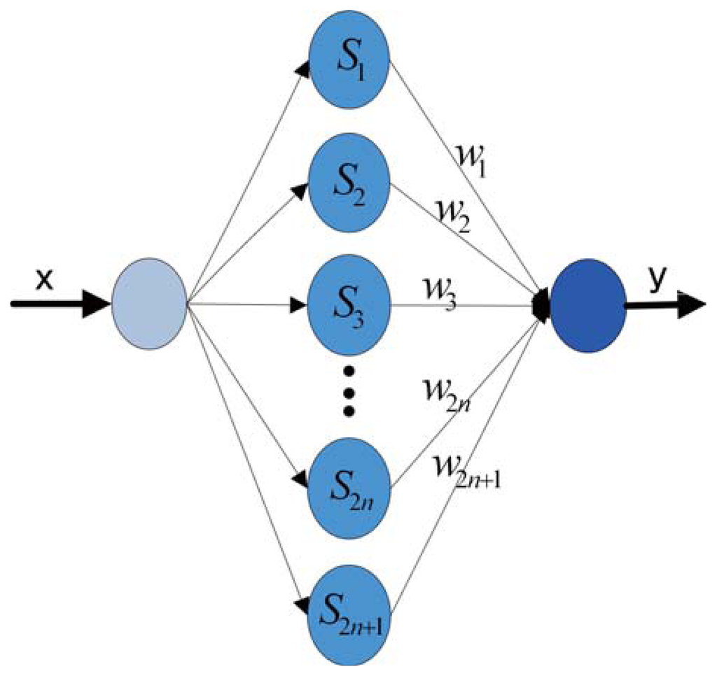Assume the H is the Hilbert space and S = {αk : k ∈ N}. S is a standard orthogonal series. Thus, for any x ∈ H, Fourier series , the FNN can be extended and is presented in Figure 1.
