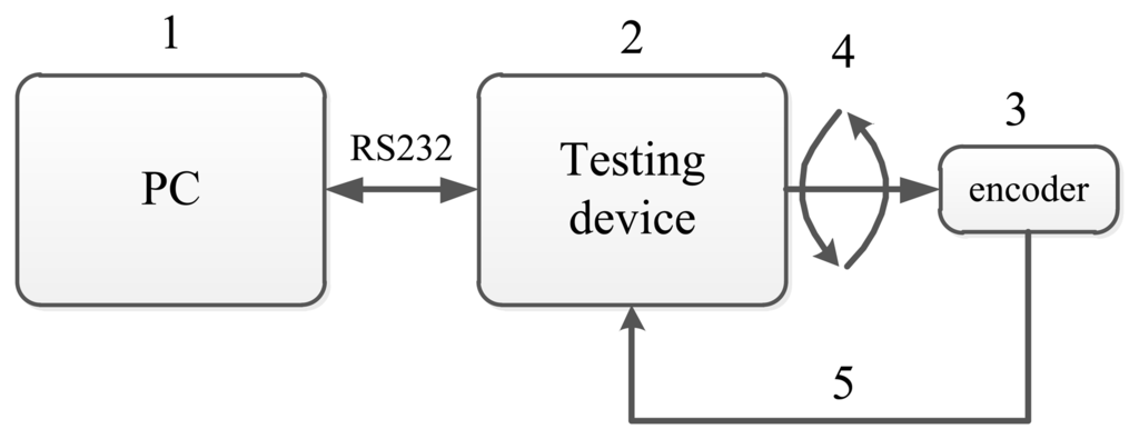 Deng et al. in [24] design a special system to compensate for and calibrate the nonlinear error of an angular sensor. It can detect less than an 18-bit different angular sensor and calibrate the nonlinear error with the NN method. The block diagram of this system for encoder calibration and compensation is given in Figure 3. This figure is a sketch map to show the components of the system. The system is mainly composed of a test device and a PC. Its mechanical transmission capacity and data transmission capacity are shown in the subsequent figures.