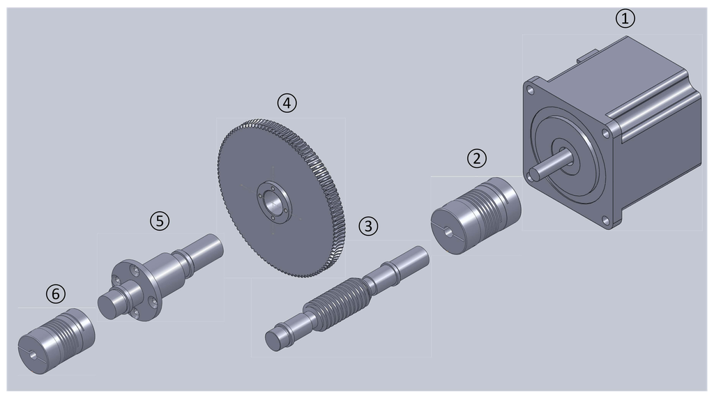The mechanical transmission module requires a special design. This design requires being highly precise and reliable. Thus, under the test, the serial joint related to the motor spurs the encoder smoothly and reliably. With this purpose, flexible shaft coupling (Figure 5②④) between the motor (Figure 5①) and reduction gear (Figure 5③) are designed to guarantee steady transmission. This resolution is far higher than any reduction gear. The element of the transmission system is described next: