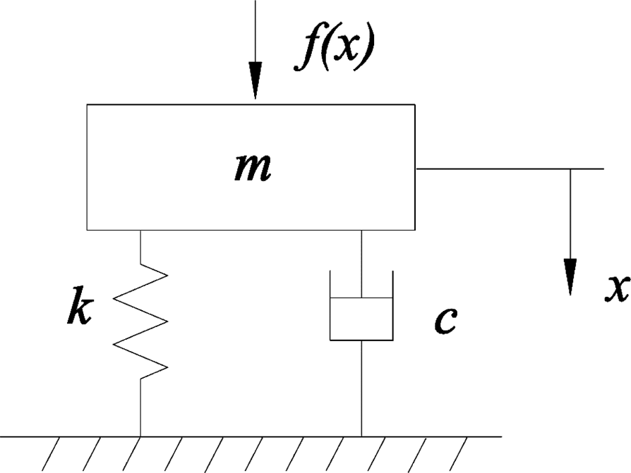 From above explanation we know that the current detection speed could not meet the demands if the quantity fed was larger than 7 kg/s, so the sensor structure should be optimized further. Relevant research has indicated that the damping ratio of the sensor has a paramount influence on grain collision response [30,31]. To exploit their relationship, the grain collision process was simplified to a dynamic model, shown in Figure 10, which kinetic equation could be expressed as: