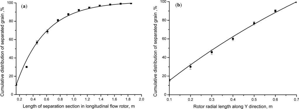 The cumulative distribution function Ss(x) of separated grain was found by integrating the probability density function sd(x), and gave: