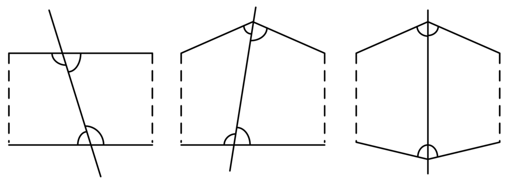 As a convex polygon, all inner angles are less than 180 degree. There are three different situations when a line (perpendicular bisector) divides a convex polygon into two pieces, as shown in Figure 5: (I) the line intersects with two edges of the convex polygon; (II) the line intersects with one edge and one angle of the convex polygon; (III) the line intersects with two angles of the convex polygon. No matter the situation, all new angles of the two new pieces are less than 180 degree. Thus, the two pieces are both convex polygons.