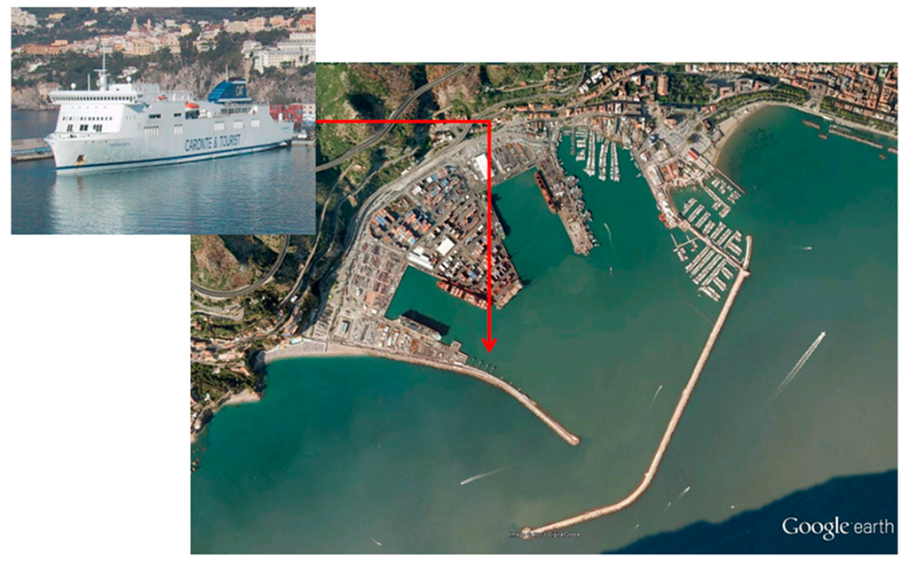 A field experiment was set up in order to assess the performances of the above described Remocean algorithm: the data were acquired by a marine radar installed on board the Caronte & Tourist ferry ship during her call in the Salerno harbour (see Figure 2) on 27 March 2013 from 11:25 a.m. to 12:00 a.m. (UTC).