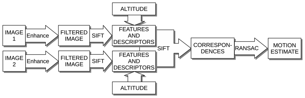 For example, due to the light absorption, the underwater image contrast is significantly reduced, leading to poorly descriptive features. In order to achieve reliable and robust feature-based image registration, additional processes are necessary. Our proposal to deal with the aforementioned problems is summarized in Figure 1 and outlined next.