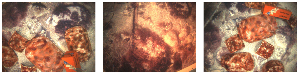 The underwater robot simulator, UWSim [30], was used for the simulated experiments. The environment where the simulated robot was deployed consisted of a mosaic of a real subsea environment. Pictures shown in Figure 3 are examples of the imagery gathered by the simulated underwater camera.