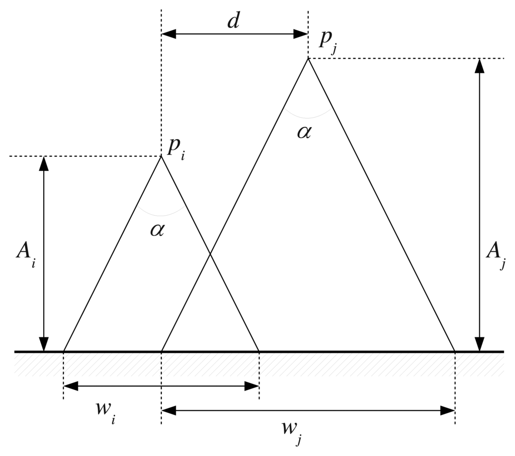 However, these criteria tell us that two images may overlap if their corresponding vision cones overlap. In real applications, it is desirable to require a larger intersection region. Otherwise, some of the image pairs selected by these criteria would be rejected later by RANSAC, unnecessarily spending computational resources. Our proposal is to include a scaling factor to Equation (8), so that two images may overlap if the following condition is met:
