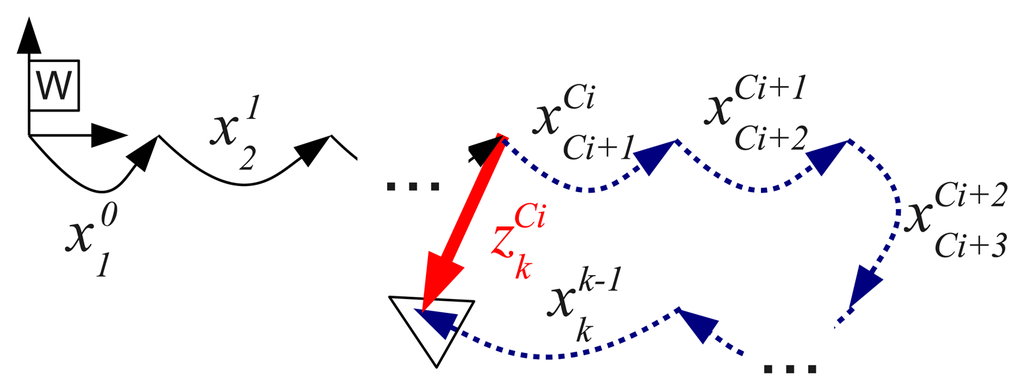 In order to reduce the linearization errors, an iterated EKF (IEKF) [28,29] can be used instead of a classic EKF. Roughly speaking, the IEKF consists of iterating an EKF and relinearizing the system at each iteration, until convergence is achieved. When the IEKF converges, the state vector in the last iteration constitutes the updated state .