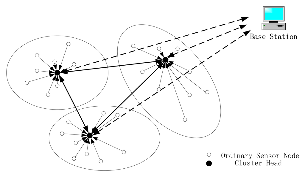 We will give some published distributed algorithms for clustering WSNs. As far as we know, linked cluster algorithm (LCA) [7,8] is one of the earliest clustering algorithms. In LCA, cluster heads form a backbone network and connect with all the sensor nodes in its cluster directly. Hierarchical control clustering algorithm [9] forms a multi-tier hierarchical cluster structure. When clustering WSNs, the authors in [10] argued that it was very unwise to ignore the geographical information of the sensor nodes, especially for a large WSN. Therefore, they proposed GS3 clustering algorithm, which used geographical radius of cluster instead of logical radius. Low energy adaptive clustering hierarchy (LEACH) [11] is another popular clustering algorithm for WSNs. LEACH forms clusters based on the received signal strength and uses the cluster heads as routers to the base station. It naturally facilitates the creation of a reputation system locally in a cluster and data fusion in WSNs.