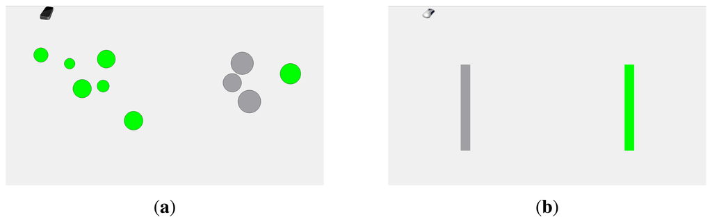 - Soukoreff, R.W.; MacKenzie, I.S. Towards a Standard for Pointing Device Evaluation, Perspectives on 27 Years of Fitts' Law Research in HCI. Int. J. Hum. Comput. Stud. 2004, 61, 751–789. [Google Scholar]