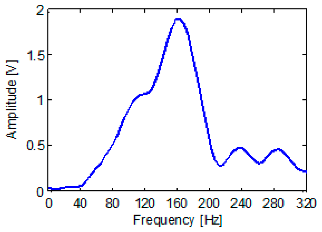By collecting and analyzing the knocking signal with a NI data acquisition card (model: PXTe-1071, National Instruments, Austin, TX, USA) it can be found that the knocking signal is in 80 Hz–300 Hz range (Figure 10) which falls in the spectral range of the friction signal of the PIG running in the pipeline. To a certain extent, a knocking signal could simulate the actual sound signal.