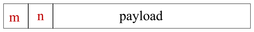 Like the MP's mechanism, the proposed mechanism considers TDMA (time division multiple access) for channel access. When the sensor nodes send packets to the MS/PS using TDMA, the packets sent in the same TDMA frame are considered the same generation packets. Typically, in the relay nodes, the same generation's packets are encoded at the same time. Similarly, at the destination, the decoding process is done only with the packets of the same generation. For encoding, we have used the format shown in Figure 8, where the encoding vector {m, n} represents the sensor ID of the packets that are coded in the packet. For any packet with an encoding vector, where m ≠ n, the payload is: Pmn = Pm ⊕ Pn; where Pm and Pn represent the packets received from the sensors Sm and Sn, and m, n = 1, 2, …, 12 (or maximum number of sensors). If m = n, the payload is Pmm = Pm, and this is the uncoded packet Pm from sensor Sm.