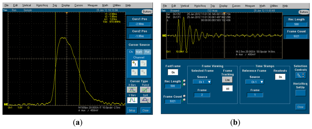 For this reason, in [44] a method is proposed that is based on the continuous wavelet transform (CWT). Thanks to the property of wavelets to be localized in time and frequency, they can be adapted, through optimization of the dilatation and translation scale factors, to the received waveform. The main drawback of the method in [44] is the rather long processing time it requires. On the other hand, once having specified the environment, an approximation of the expected received pulse shape can be determined in advance. In the experiment described in [45], for example, a received signal was found, that was very similar to the seventh derivative of the Gaussian function, so that the latter was assumed as the reference.