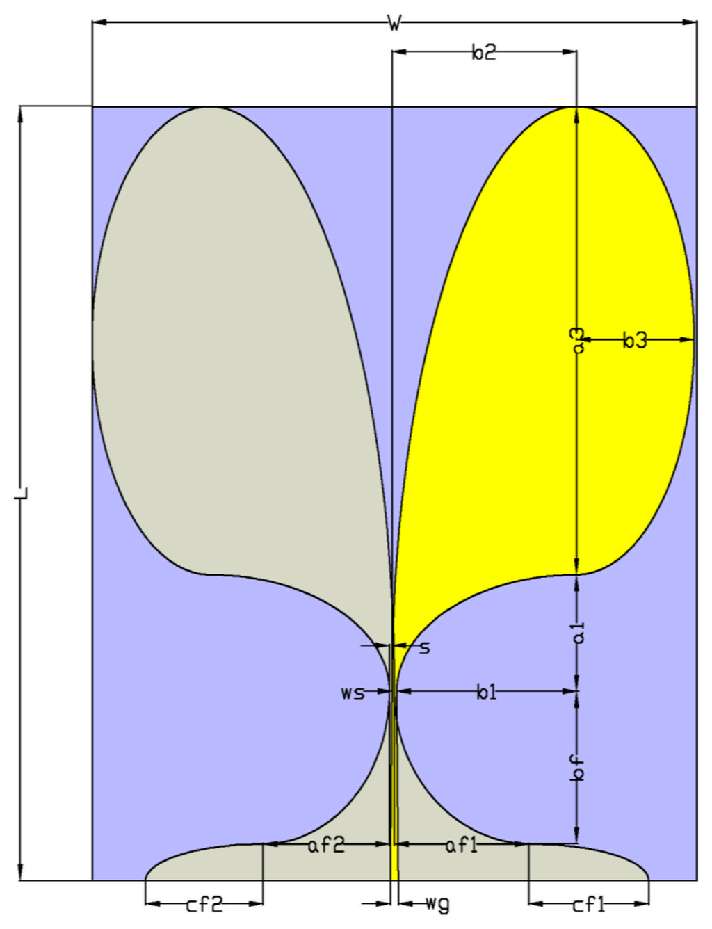 The antenna has to work in the 3.1–10.6 GHz band according to the US Federal Communications Commission (FCC) definition [34]. During the project, different types of antenna have been analyzed mostly based on the Vivaldi antenna structure, because it provides the required large bandwidth and a high fidelity factor [35]. Results, not reported here for the sake of brevity, show that the system performance is not significantly affected by the antenna type. Therefore, the only antenna we have considered for the following analysis and simulation is an antipodal Vivaldi antenna.