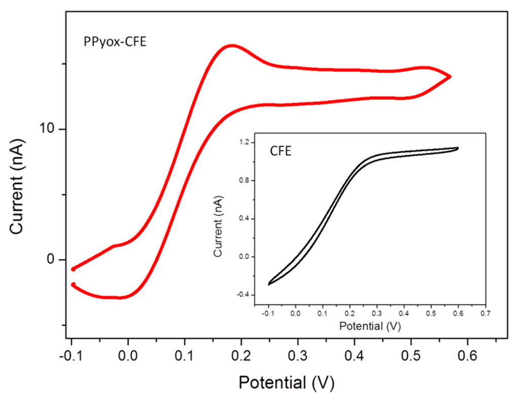 3.2. Cyclic Voltammetry Measurements of DA Using PPyox-CFE