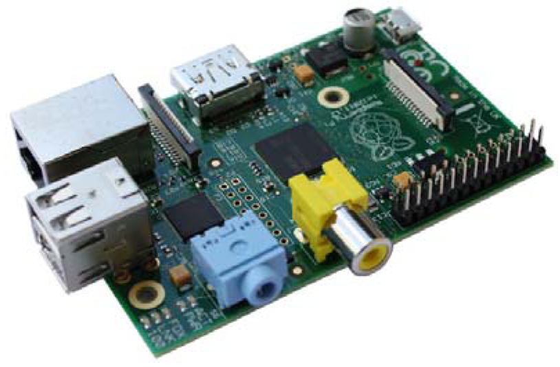 During the last decade, development of microelectronics has provided smaller, faster and more affordable computational platforms. Since flexibility is the main constrain for Biosignal PI, the chosen embedded platform should provide possibility for modular development of hardware and software. Modular hardware development can be done with microcontroller based systems as is done in Arduino projects [11]. However, systems based on operating systems like Linux can provide higher degree of flexibility and hence are more favourable for this kind of development compare to firmware development for microcontrollers. Several compact single-board computers are introduced and have got popular in the last five years e.g. Raspberry PI (RPI) and BeagleBone Black. RPI [12]—a credit-card-size single-board computer with an ARM processor—was chosen for this project, see Figure 1. The RPI is developed by Raspberry Foundation. The main reasons for choosing RPI over its competitors were the affordable price and the active open-source community with enormous amount of projects, shields, and tutorials.